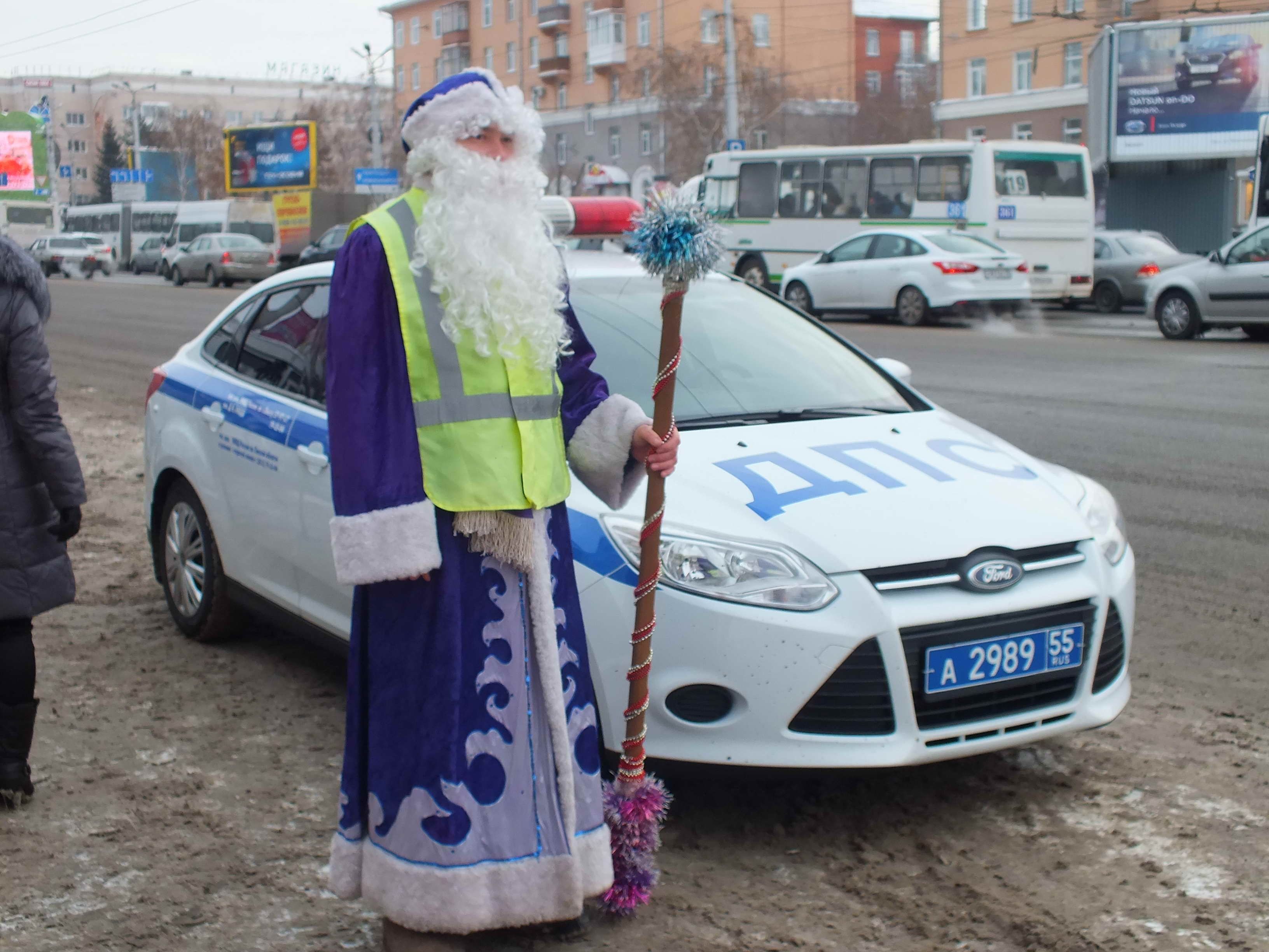 Дедушка Мороз со своей внучкой выделили время в плотном графике для того, чтобы помочь сотрудникам ГИБДД в патрулировании улиц. Новогодние герои, конечно, штрафовать никого не стали, а наоборот - дарили водителям подарки за правильные ответы на вопросы.