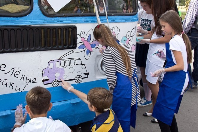 31 мая в 14:00 в парке «Зеленый остров» все желающие смогут помочь в рисовашках на 4 троллейбусах, которые в итоге выйдут на свои маршруты. День защиты детей позволит сделать то, за что в обычный денек можно было бы попасть в гости к полицаям. Надеемся на минимальное количество слов из 3 букв на общественном транспорте, а то дети у нас умные не по годам, а взрослые и тем паче.