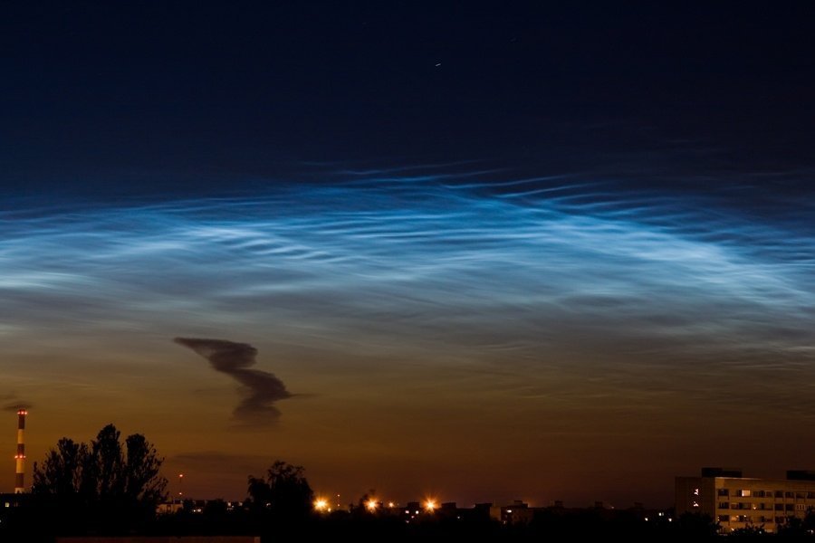 Серебристые облака увидели жители нашего города в небе 7 июня. Видно красивое природное явления только летними ночами, а продолжаться может как несколько минут, так и несколько часов. Это явление - редкость во всем мире, но в нашем городе может наблюдаться до 20 раз за лето.