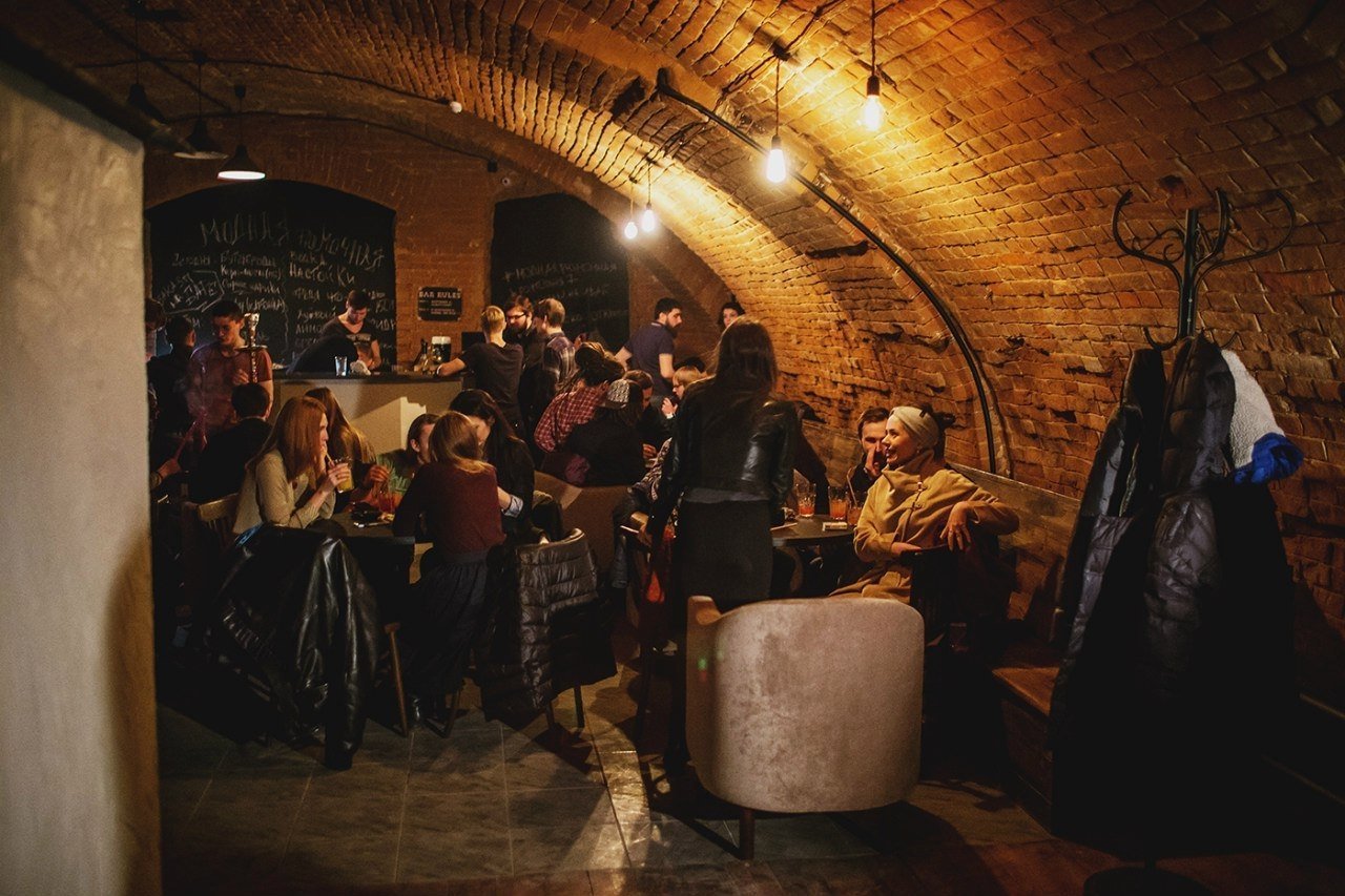 Редакция попала в #моднуюрюмочную в самый разгар свистоплясок, когда уже дым стоял коромыслом. Если вы бывали в бургерной «Кирпичи», то в рюмочной точно не заблудитесь. Интерьером заведение не изменилось: те же кирпичи, тот же полумрак, только атмосфера безудержного веселья погуще.
