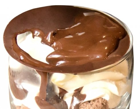 Главные компоненты этого десерта - вишня и шоколад. Пряная вишня, замоченная в глинтвейне, шоколадный бисквит, взбитый ганаш и горячий соус